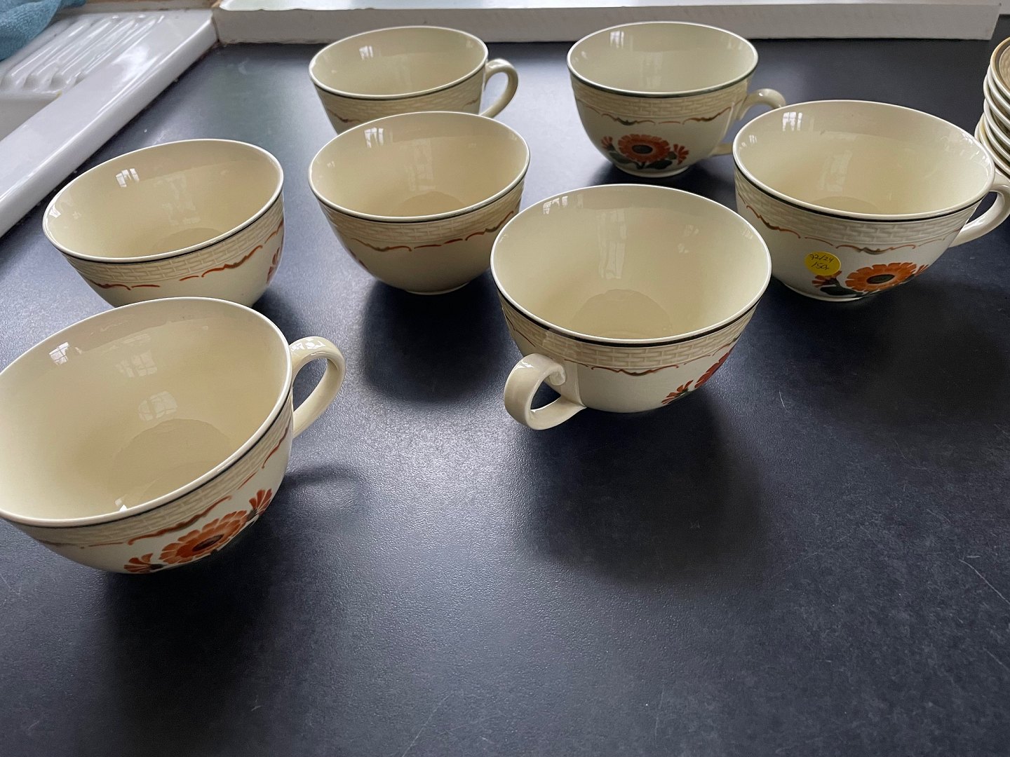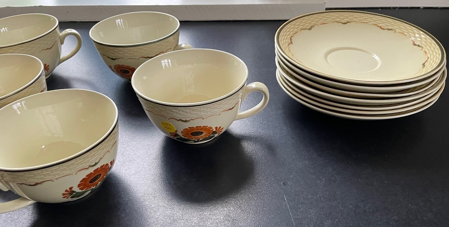 Aluminia, Morgenfrue. Designet af Niels Thorsson. Produceret i perioden 1934-1967. Luftmalet. Tekop. Nr. 1782. Højde 5,5 cm. Diameter 9,5 cm. Underkop diameter 15 cm. Flot stand. Pris: 150 kr. stk. Lager: 7
