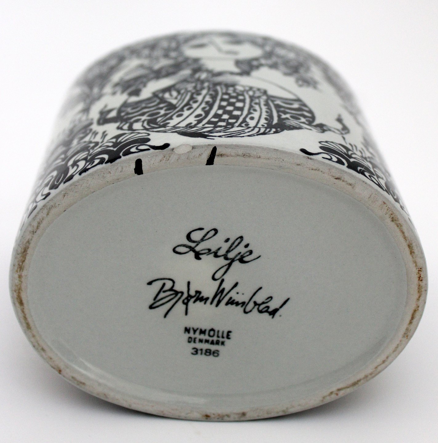 Bjørn Wiinblad, Nymølle, Leilje Oval vase med kvindemotiv. Nr. 3186. Højde 12 cm. Længde 12 cm. Bredde 9 cm. Fremstår med overfladekrakeleringer og lille kanthak i bund. Pris: 300 kr.