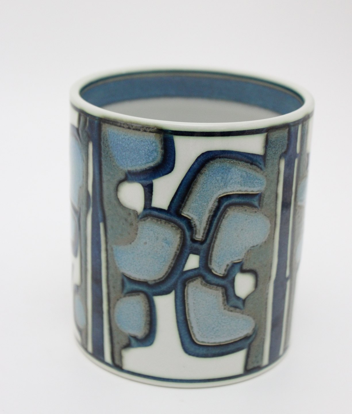 Royal Copenhagen, fajance, Stort årskrus 1975 med 925 sterlingsølv plaquette i bund, den ene med indgraveret tekst. Kunstner Bodil Buch. Nr. 3135. Årskrusene er produceret fra 1967 og frem til 2014. Højde 11,5 cm. Diameter 10,5 cm. I. sortering. Flot stand. Pris: 300 kr. stk. Lager: 2