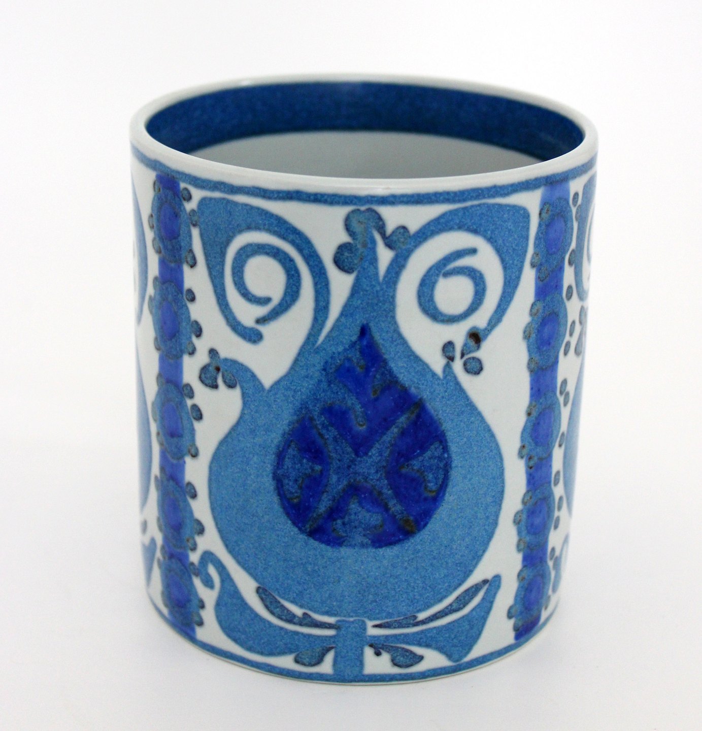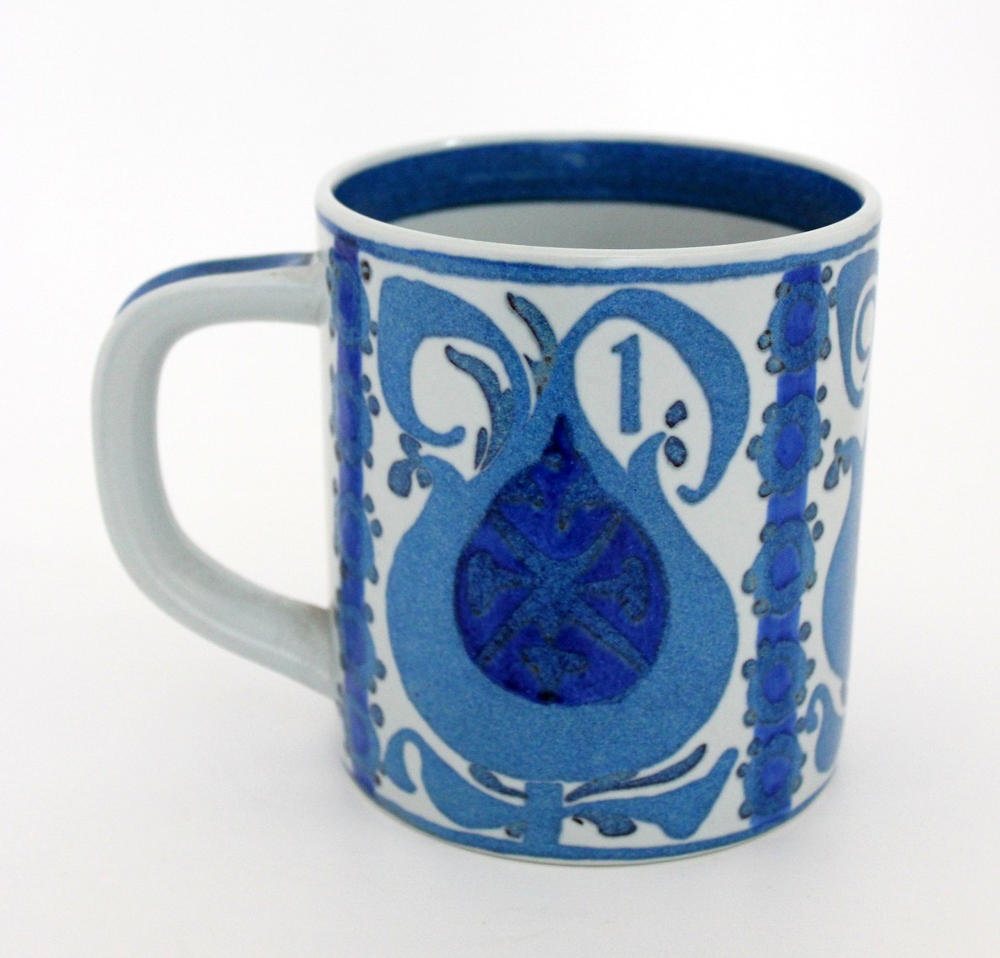 Royal Copenhagen, fajance, Stort årskrus 1969 med 925 sterlingsølv plaquette i bund. Kunstner Nils Thorson. Nr. 3135. Årskrusene er produceret fra 1967 og frem til 2014. Højde 11,5 cm. Diameter 10,5 cm. I. sortering. Flot stand. Pris: 700 kr. stk. Lager: 1