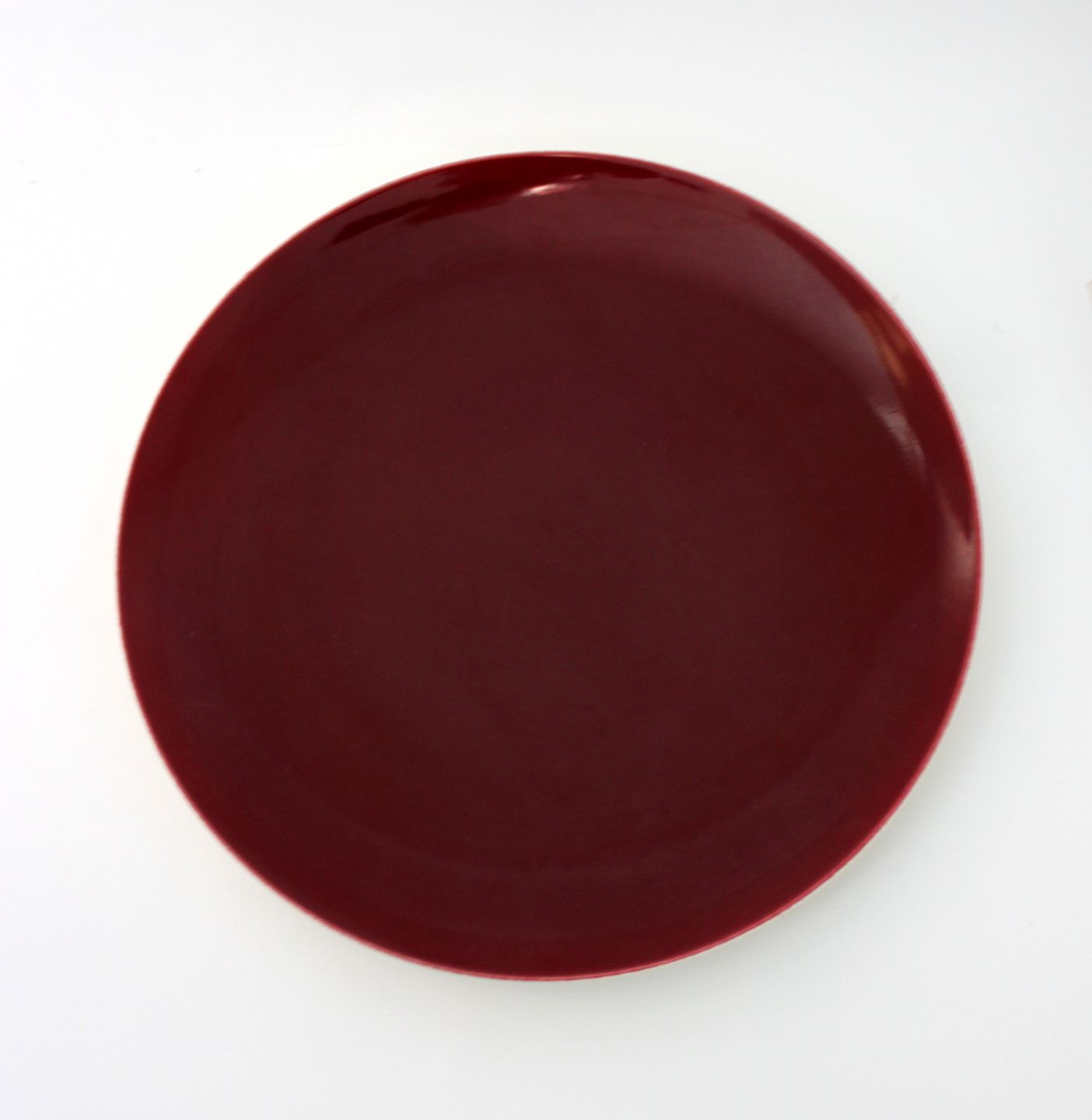 Aluminia, Confetti smukke bordeaux glasserede middagstallerkener. Efterhånden sjældne i flot stand og den store størrelse, disse har lettere almindelig brugsslid i form af småridser i overfladen. Nr. 5. Diameter 25,5 cm. Pris: 350 kr. stk. Lager: 4